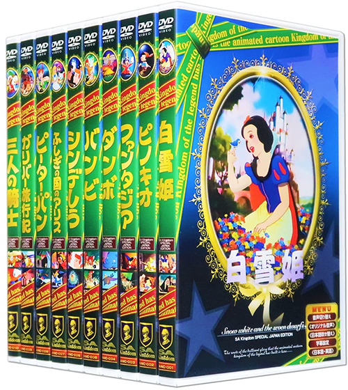 「アニメ映画クラシック全集」は、あなただけでなく、老若男女、ご家族全員が楽しめます。英語と日本語吹替え、字幕も英語と日本語がついていますので楽しみ方はいろいろ。何回観ても飽きません。また、大学の英会話のテキストとしても、これら名作が使われています。大人だけでなく、お子様にも、目と耳から脳に入りやすいので、驚くほどに英会話が上達します。娯楽だけでなく学習にも役立つとは……。この「アニメ動画クラシック全集」の人気が高い秘密かも知れません。今回ご提供セットは限定100セット。嬉しい特典プレゼントの付いた今回の機会をお見逃しなく、お早めにお申し込みください。