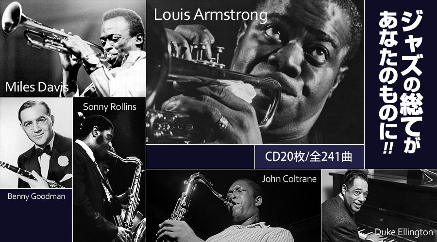 今回の『ジャズの黄金時代』は、1920年代から50年に亘る、本場アメリカのビッグ・スター(ビッグ・バンドおよびコンボ)たちが、すべて網羅された、まさに画期的な不滅のCD全集です。