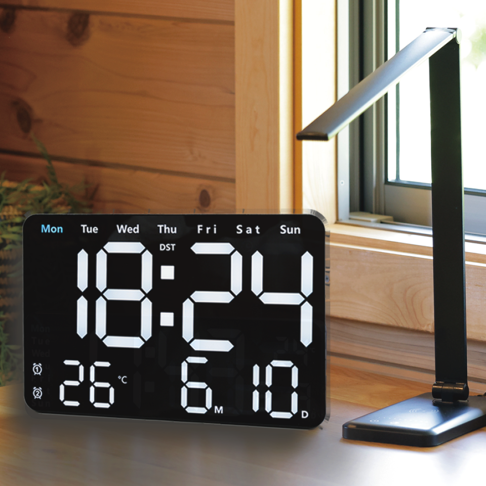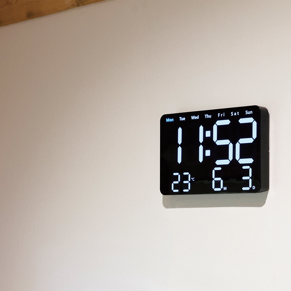 年齢を重ねるにつれて、今何時か、今日は何日なのか、など、ついつい忘れてしまうものです。正確な時間や日付を把握することは、日常生活のリズムを保つ上でとても重要です。このデジタル時計は、大きな文字盤で、時間、日付、曜日、そして温度まで一目で確認できます。すぐに読み取れるため、日常の中での「忘れ」が減り、温度は、熱中症や寒さ対策にもなるので、安心して暮らせる環境をサポートします。置き時計にも掛け時計にもなる優れもの。なんといってもスタイリッシュでかっこいい時計なので優越感に浸れます。あなたの生活に、是非取り入れて生活のリズムを快適に保ちましょう。お申し込みは今すぐ!