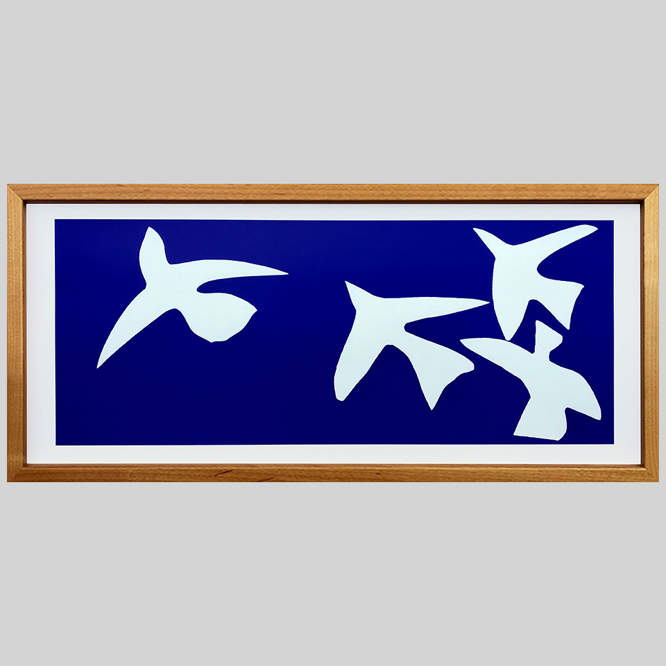 今回お届けする作品は『飛翔(ひしょう)』。いま欧米で高い人気を誇る画家、マティスの代表作で、世界中のホテルやホールに飾られて、近年、日本でも人気の高い高級複製シルクスクリーン絵画です。 どの部屋にも格調高く調和し、いつまでも見飽きることのない、深い味わいを湛えたインテリアです。迫力サイズの額装で、価格も魅力です。