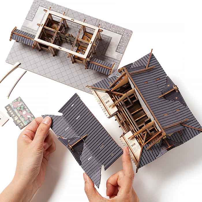 カッターや接着剤など道具が無くても組み立てられる木製立体パズル、その名も「ki-gu-mi(キグミ)」。木の温もりのある親しみやすい素材でできており、お城の石垣や屋根の作りなど精巧に再現されています。