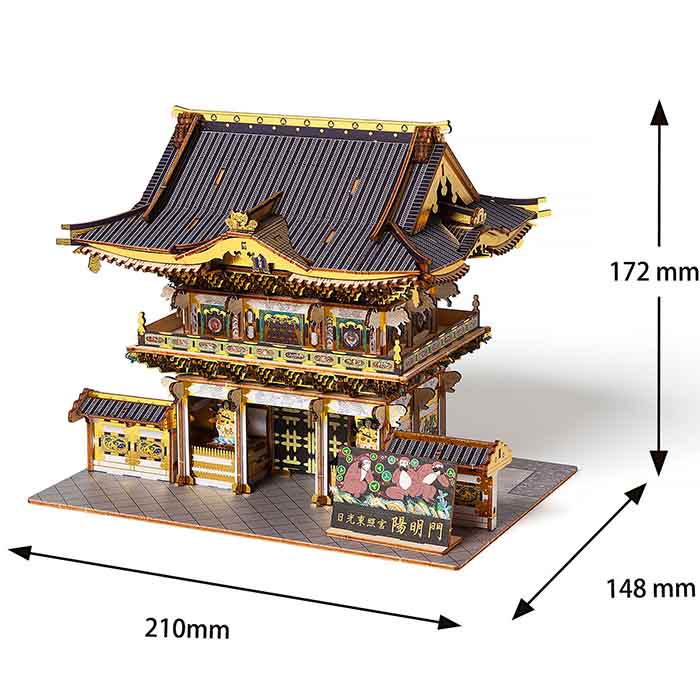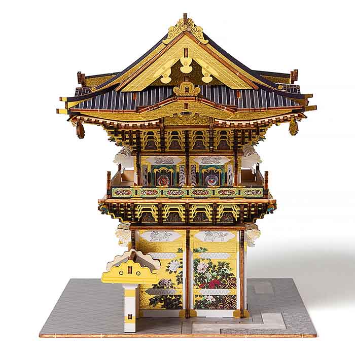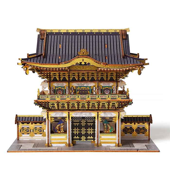 「組み立てる時はワクワクしました。」「出来上がった時は嬉しくて友人に自慢しました」などなど、評判が評判を呼んで、今、愛用者が急増中の木製立体パズル。ファン待望の日光東照宮「陽明門」がカラーバージョンで登場しました。カッターや接着剤など道具が無くても組み立てられ、木の温もりある親しみやすい素材でできています。組み立てれば、奥行き約15センチ、横約21センチ、高さ約17センチの金色に輝く『陽明門』が完成します。