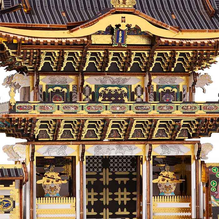 日光東照宮の陽明門は、日本を代表する最も美しい門と云われ、日が暮れるのを忘れるほど一日中見ていられることから、別名「日暮門(ひぐらしのもん)」ともいわれています。その心を奪われる豪華絢爛な美しさをリアルに再現するため、特殊な「金色箔押しUVカラー印刷」でカラーリングされており、実物さながらの金色の輝き、細部の鮮やかな色彩までにもこだわった、贅沢なパズルとなっております。