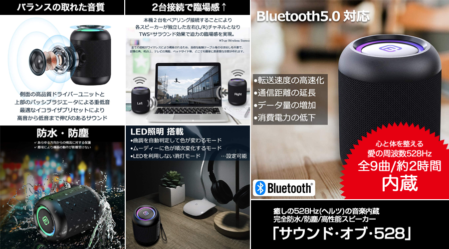 「こんなリラクゼーション製品があるなんて感激です」「音楽内容が優れているし、音が凄くいい」「枕もとで聞いています。朝の寝覚めが爽やか」「毎日30分強、入浴時に聴いています」「外出に持ち歩いています」…と、『サウンド・オブ・528』が、いま全国で、話題沸騰!ホテルや病院、サウナからの注文が殺到しています。